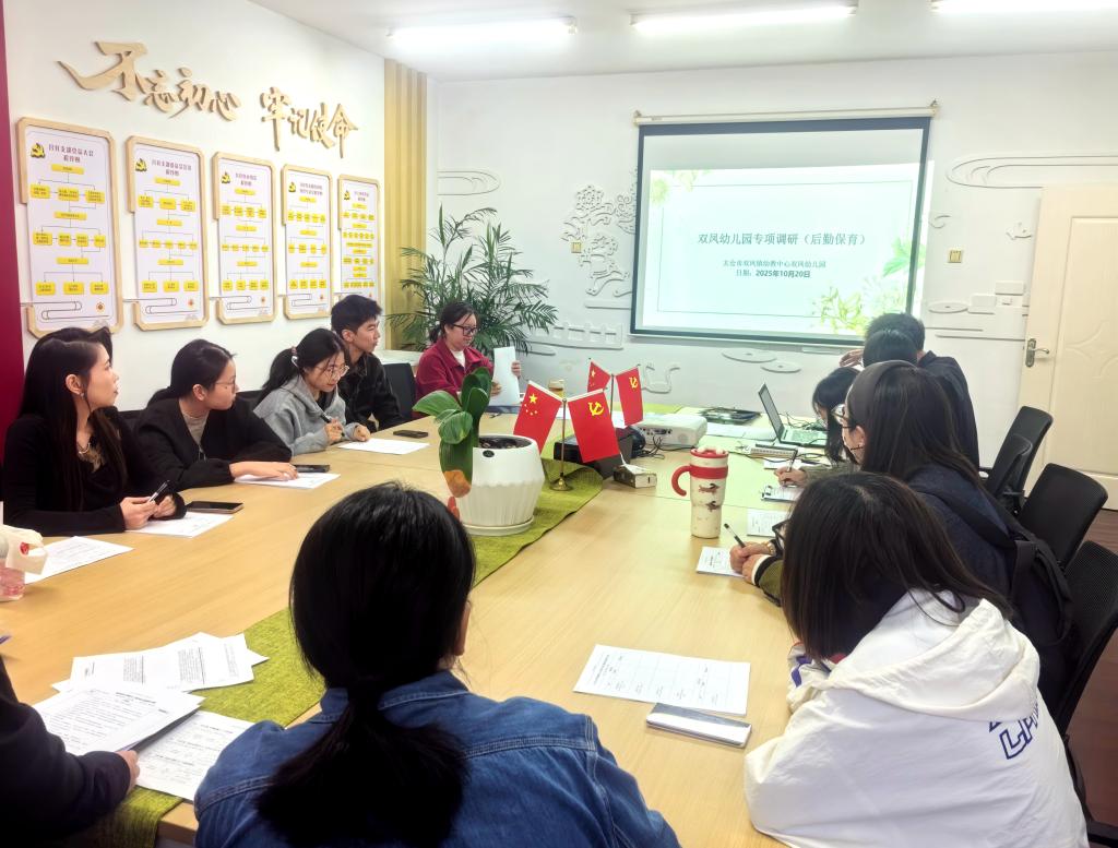 2025 年 10 月 20 日上午,太仓市双凤镇幼教中心调研团队走进双凤幼儿园,围绕后勤保育质量开展专项调研,为园所保育工作 “把脉问诊”。本次调研团队由中心行政人员、各园园长、后勤园长、保健老师及年级组长组成,双凤幼儿园提前备好调研表、海报纸与马克笔,全力配合调研工作。